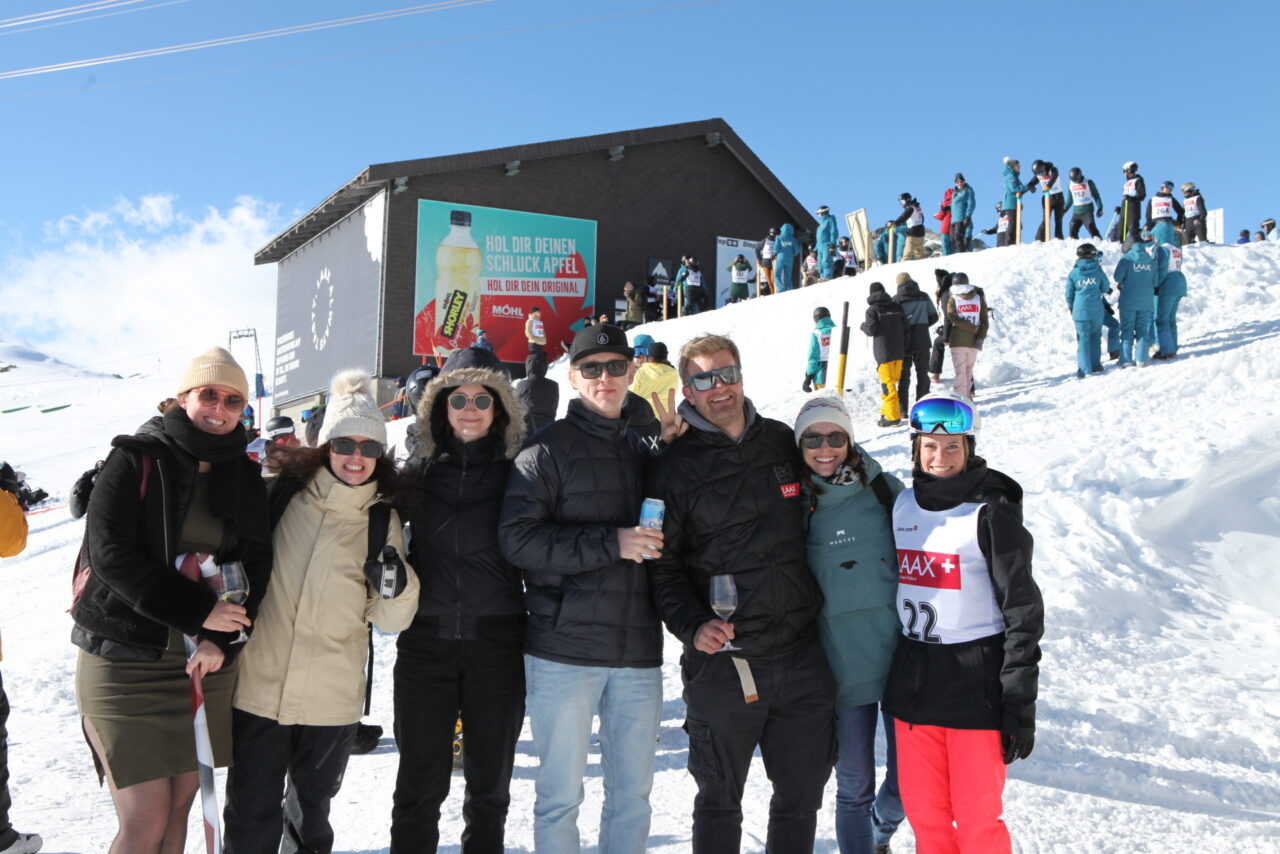 Nach dem Rennen gab es für alle Mitarbeitenden ein feines Abendessen in der GALAAXY. Rund 350 Mitarbeitende konnten gemeinsam auf die vergangene Wintersaison anstossen, während die Sonne sich hinter den Bergspitzen verabschiedete. Nach dem Dessert wurden die besten vier Teams bei der Siegerehrung gekürt und mit tollen Preisen beschenkt. Im Anschluss ging es mit der Gondel ins Tal, wo noch bis in die Nacht hineingefeiert wurde.